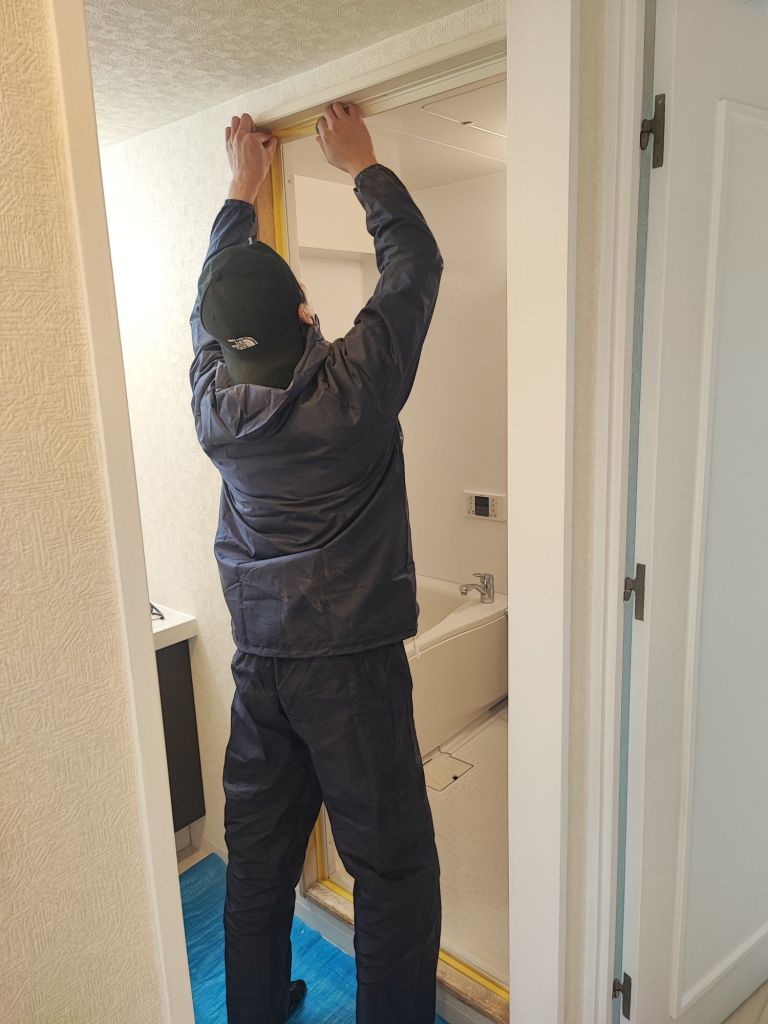 ユニッバス入り口の枠をダイノックシートで施工しました。