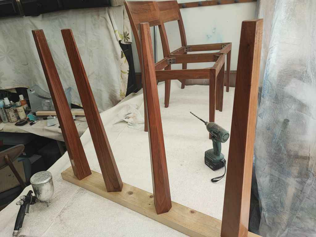 椅子もセットで塗装。ダイニングテーブルの脚も行なっています。